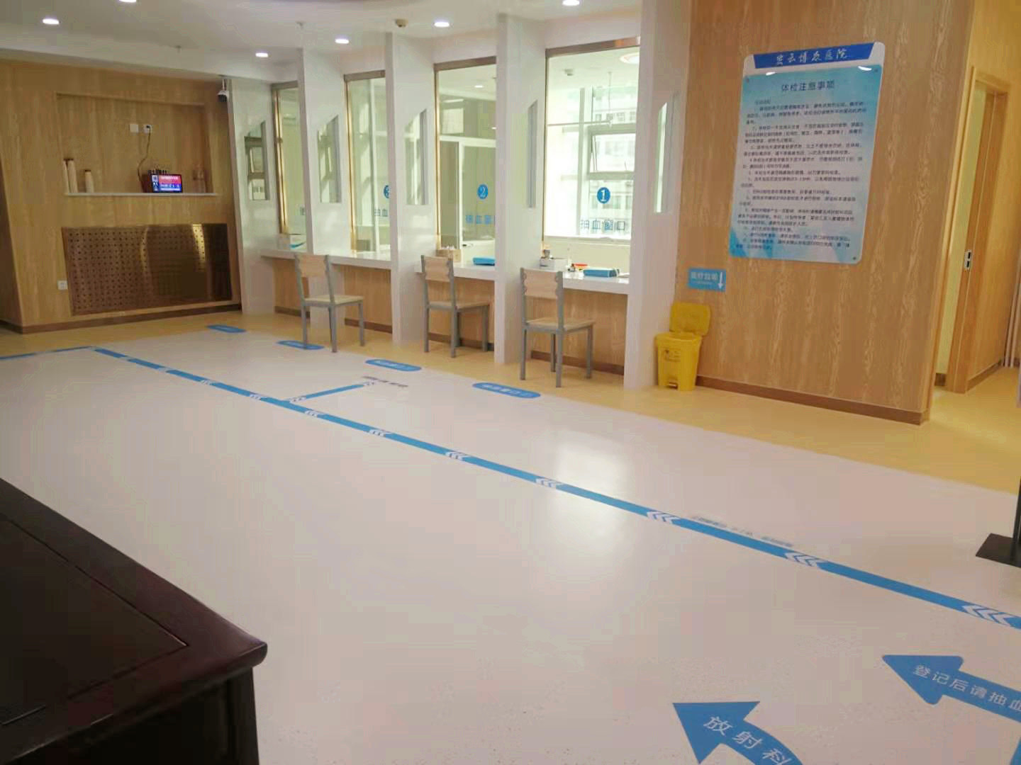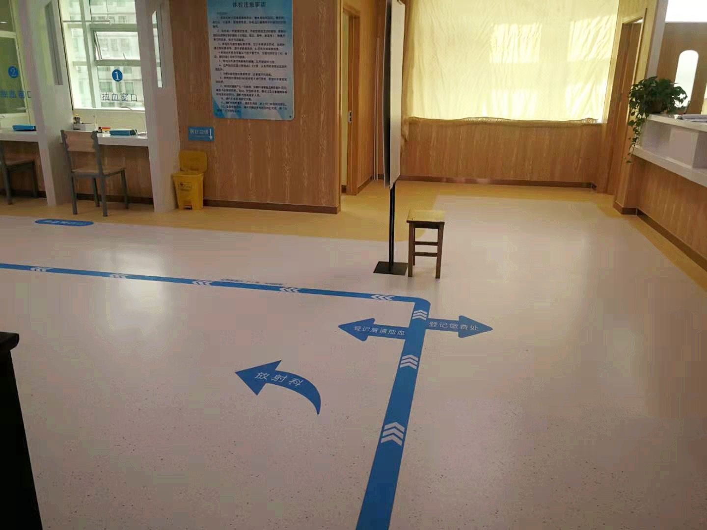 北京密云博眾醫(yī)院 品牌:金泰 時(shí)間:2019年9月 材質(zhì):醫(yī)用PVC地板 厚度:2.0mm 規(guī)格:2*20M 顏色:紅、黃、白等。