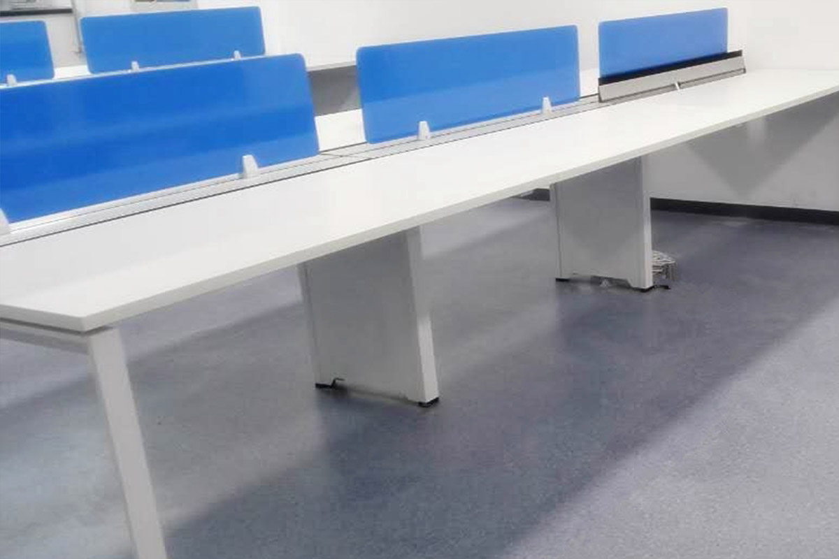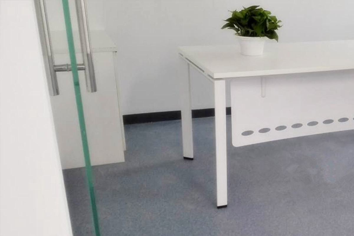 2016年8月上海某科技公司正式入住該產(chǎn)業(yè)園,在裝修時,該公司負責人經(jīng)過多家考察和對比,選擇了金泰商用塑膠地板作為其辦公室地板,顏色為淡藍色,厚度為2.6mm,耐磨層選用厚的0.55mm。經(jīng)過工人師傅們的辛苦努力,幫客戶處理了地面開裂嚴重,老地面環(huán)氧起殼等各種問題,重新做了地面找平,鋪完后,客戶和設計師對我們的服務贊不絕口,說是比設計的還好,而且和整體的協(xié)調(diào)?蛻舻诙旖患按氖褂蒙狭,快來看看實圖有沒有心動。金色陽光服務,美麗品質(zhì)泰山!